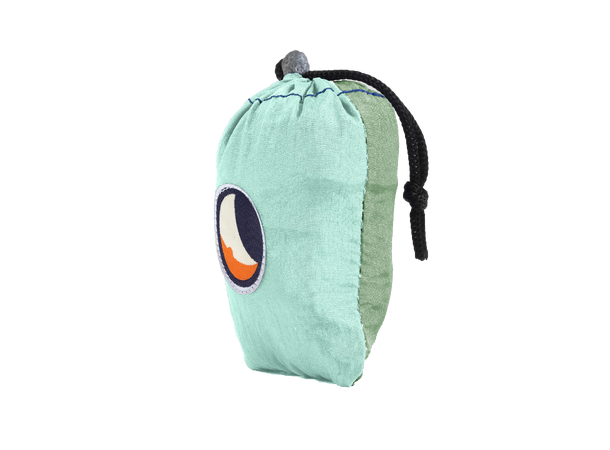 Eco Market Bag er laget av restmaterialene fra hengekøyeproduksjonen til Ticket To The Moon. Den veier nesten ingenting og får enkelt plass i lomma, sekken, veska eller under setet på sykkelen. En bred og komfortabel skulderrem gjør handleposen enkel å frakte når du sykler.